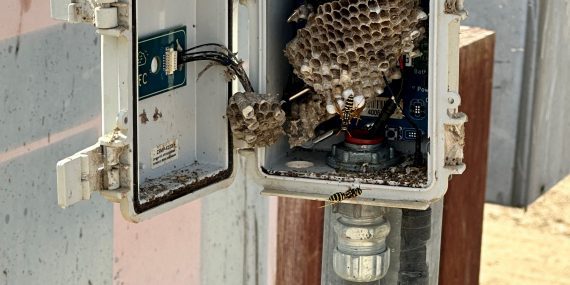 Someone stole the solar battery charger and cable gland from Zenseio TeleFarm device — but the wasps didn’t mind. They saw the vacancy and moved right in.